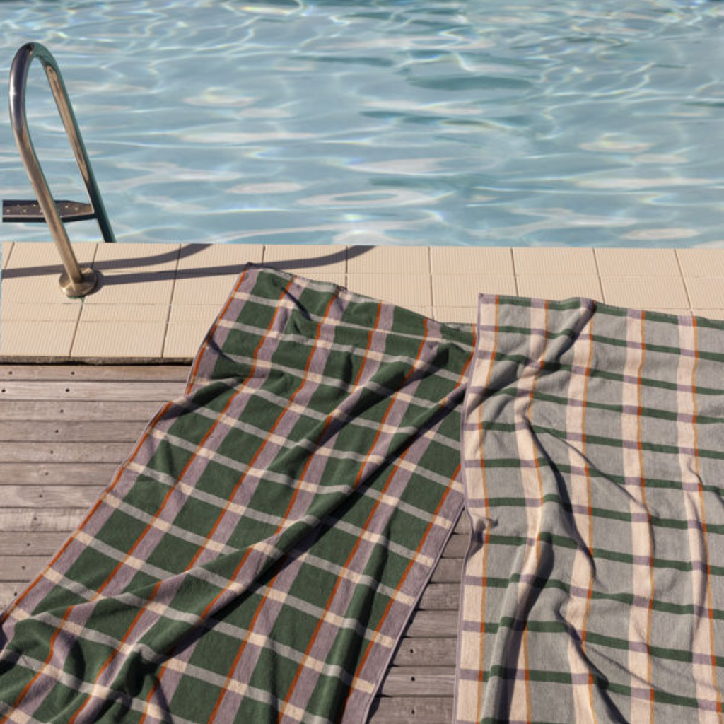 Perfect for sun-soaked days, the generously sized towel features a lively, reversible plaid design made from soft, woven cotton.