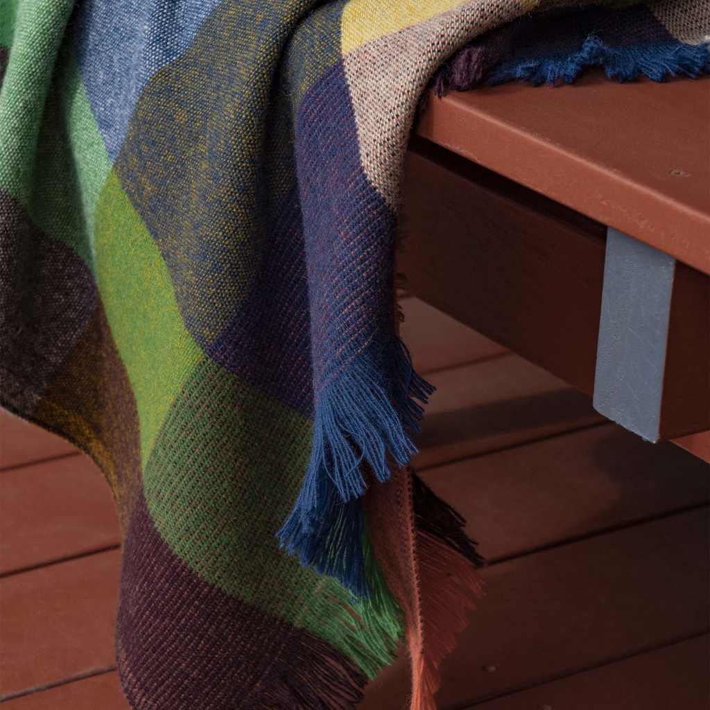 The Cabin Wool blanket is a study of colour and its infinite combinations. Harmonious unions exist next to contrasting combinations and results in a united, playful design.