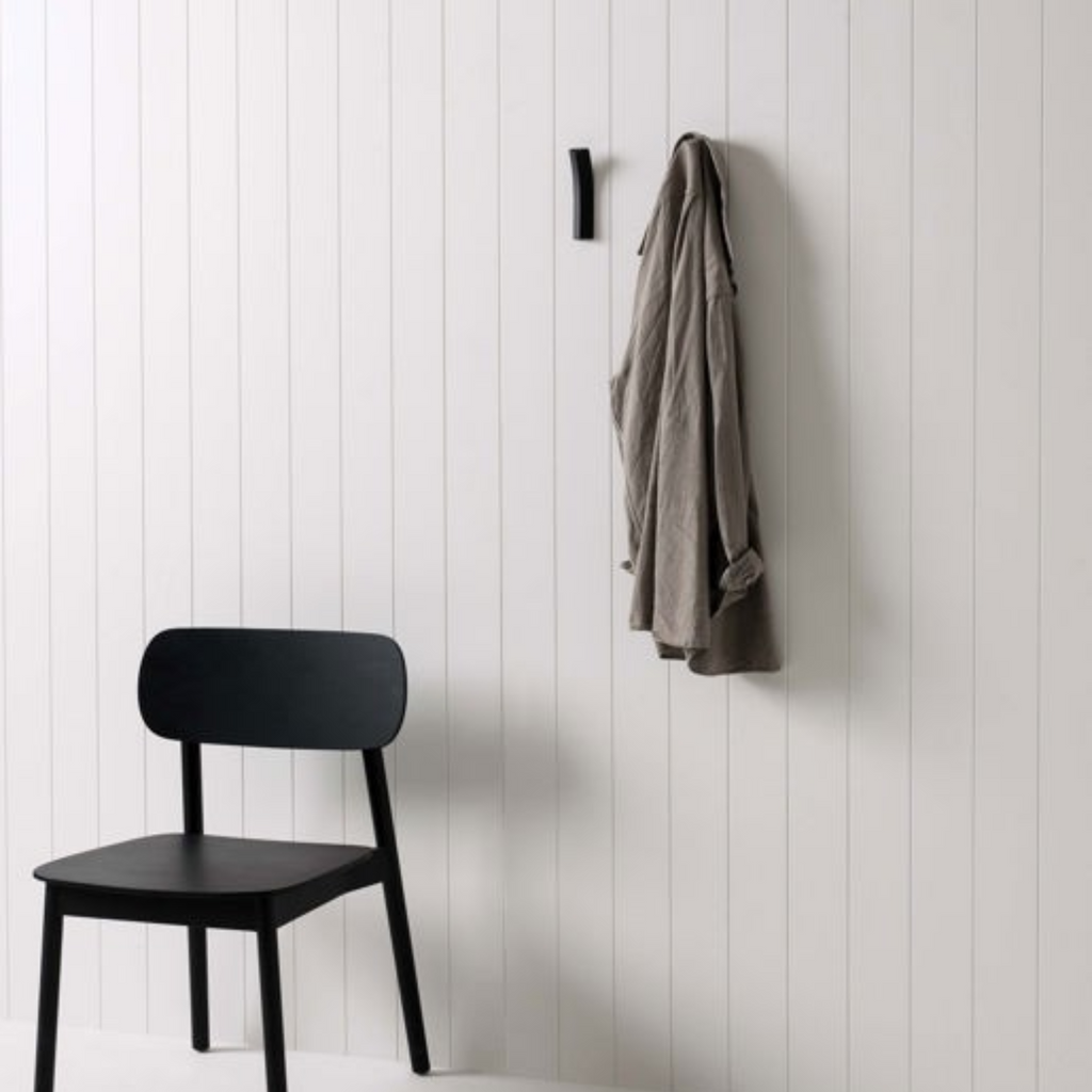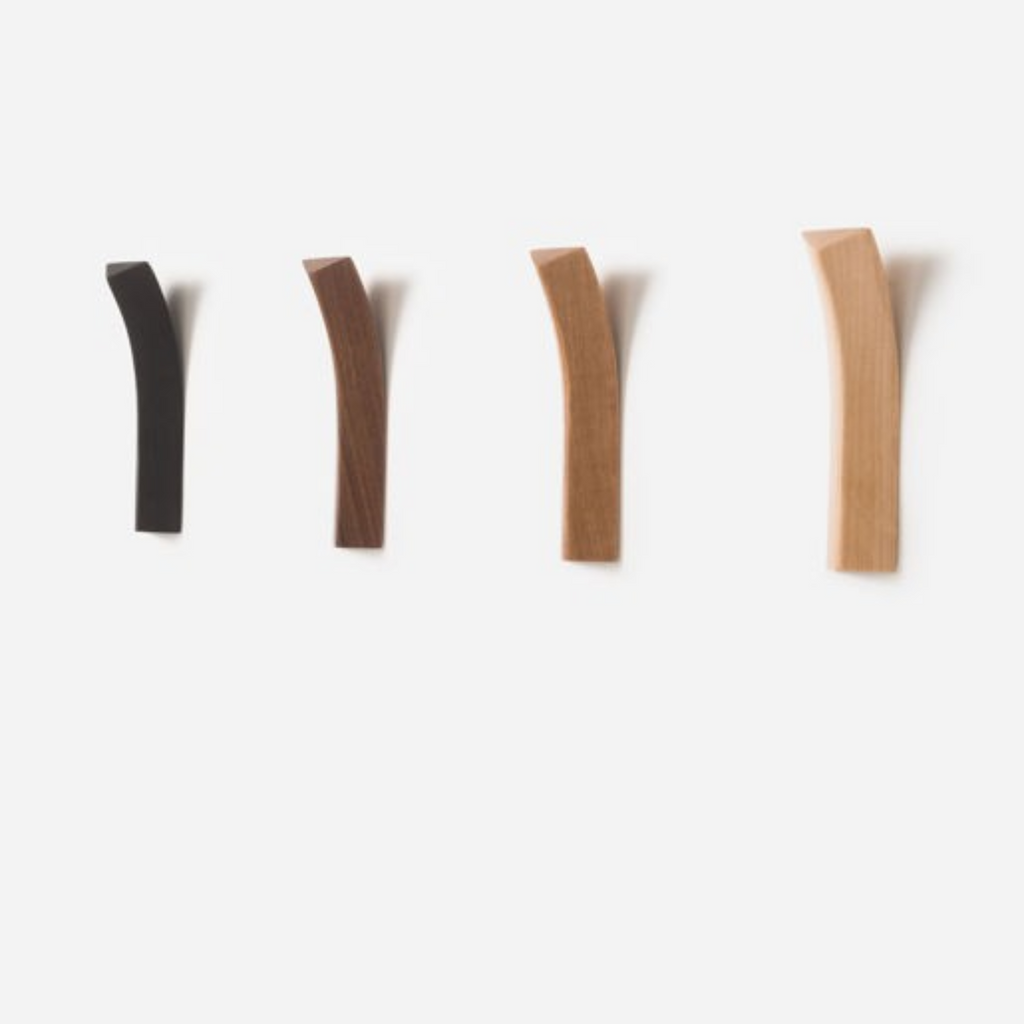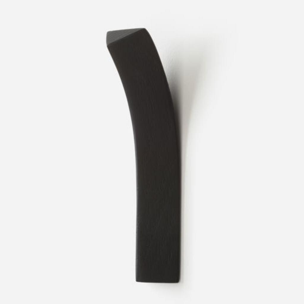 The Bow Hook makes a statement with its unique design. The extruded triangular form seamlessly lifts away from the wall to create a subtle hanging point to hang clothing, towels, keys and other prized items.