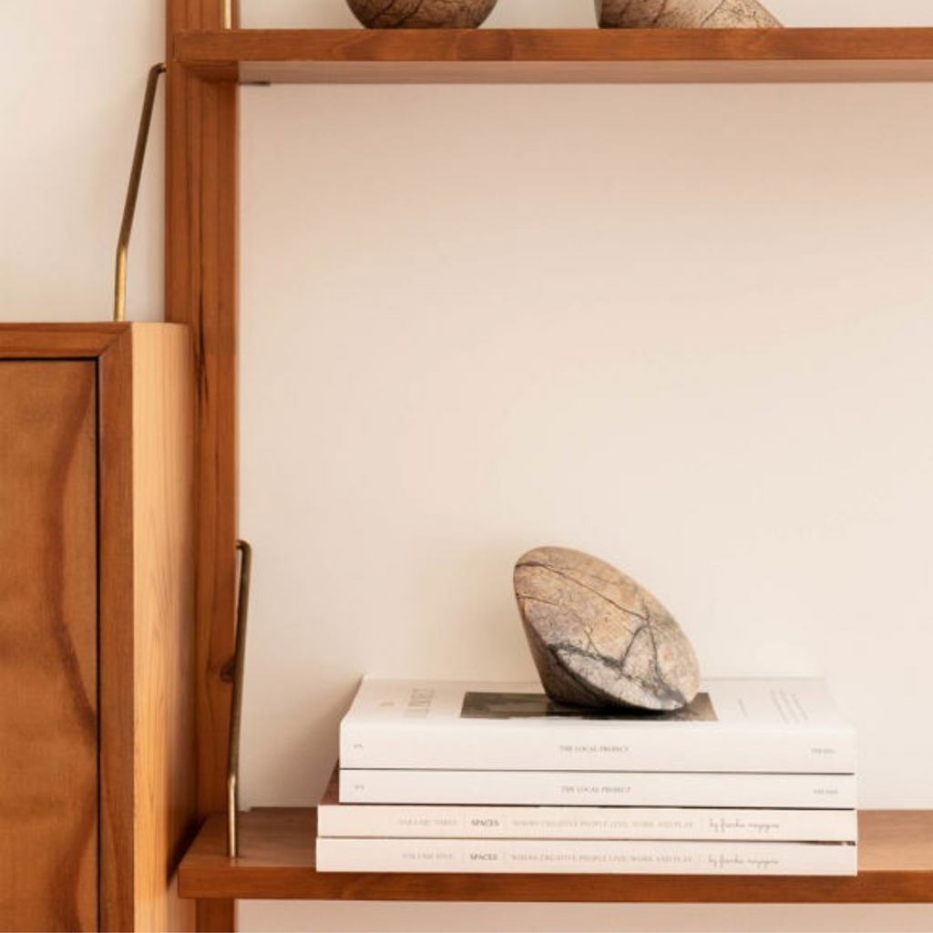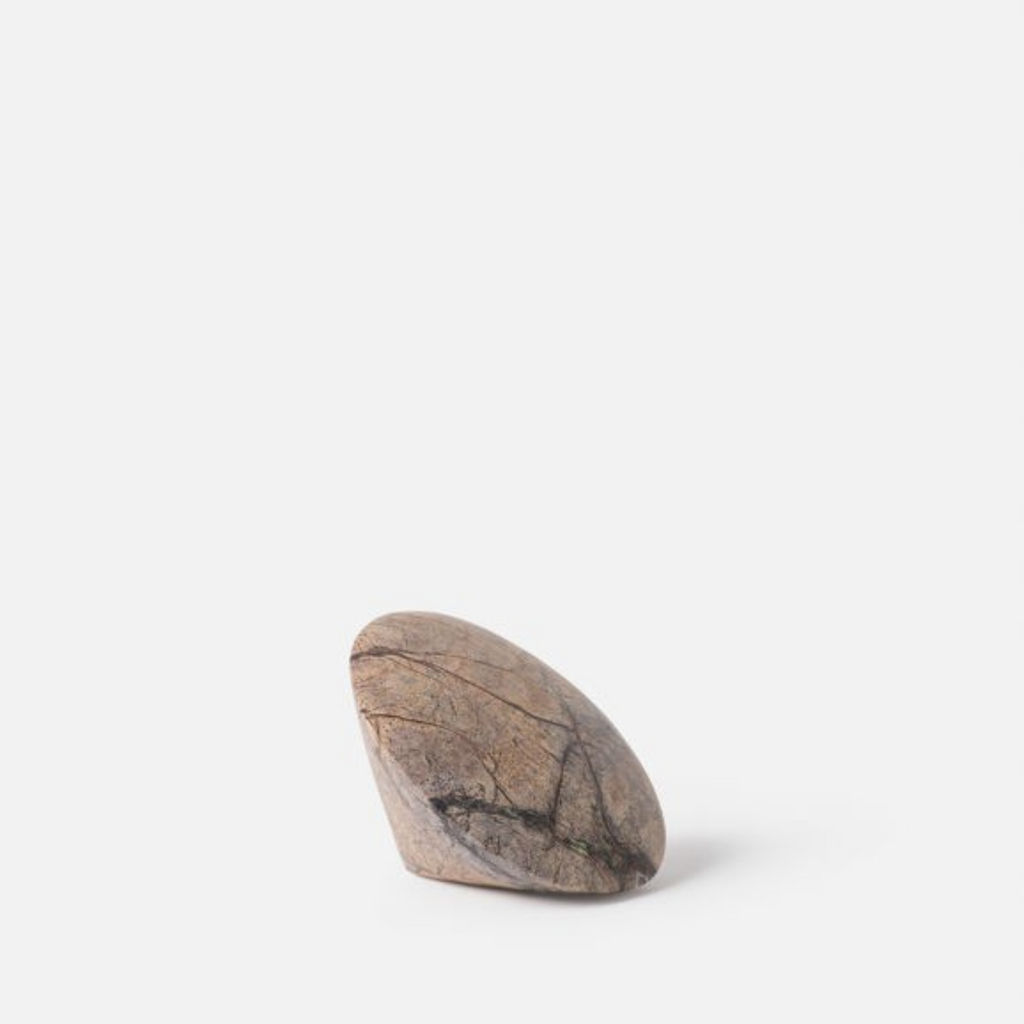 The Geo Marble Cone can be displayed as a bookend or a sculptural object on its own. The complex tones are reminiscent of the rich forest floor, as seen from above. The cone is skilfully hand-carved from forest brown marble. The natural minerals found within marble add to the character and makes each piece completely unique.