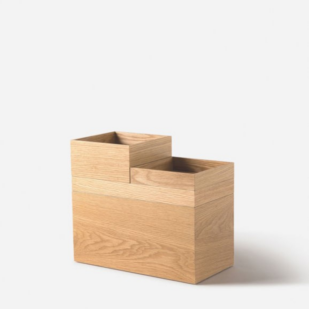 The Oku Office Box range in natural oak will help you get it together - if 'it' is your bits, pieces, stationery and stuff. Designed to stack and sort, this useful, lightweight modern storage solution will cleverly earn its place in your space.  Fits Medium Storage Box