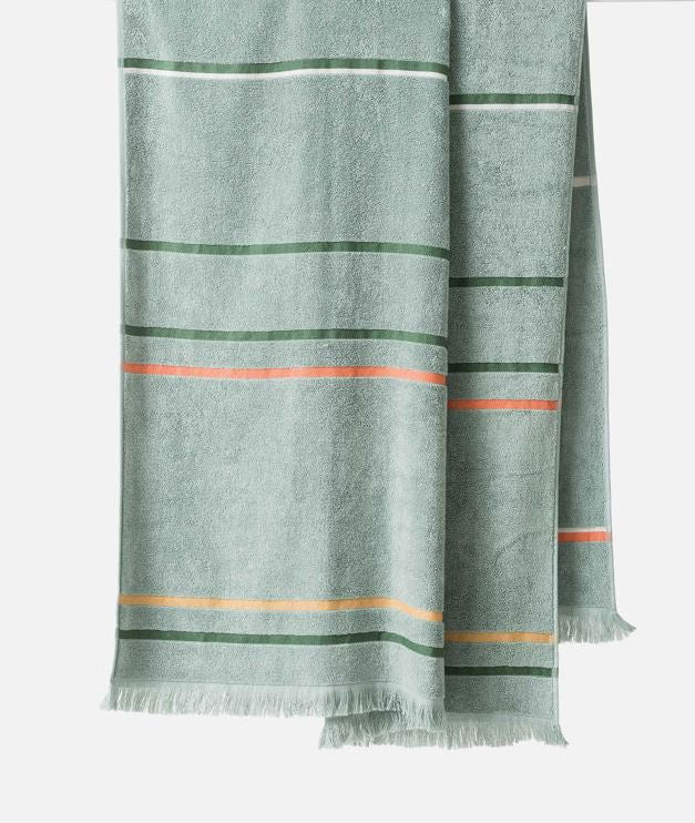 The generously sized Umi Cotton Beach Towel is a summer must-have for days spent lazing by the water's edge. The coloured flatweave details sit smooth, while the soft turquoise heron hue has an absorbent terry finish.