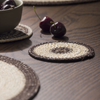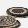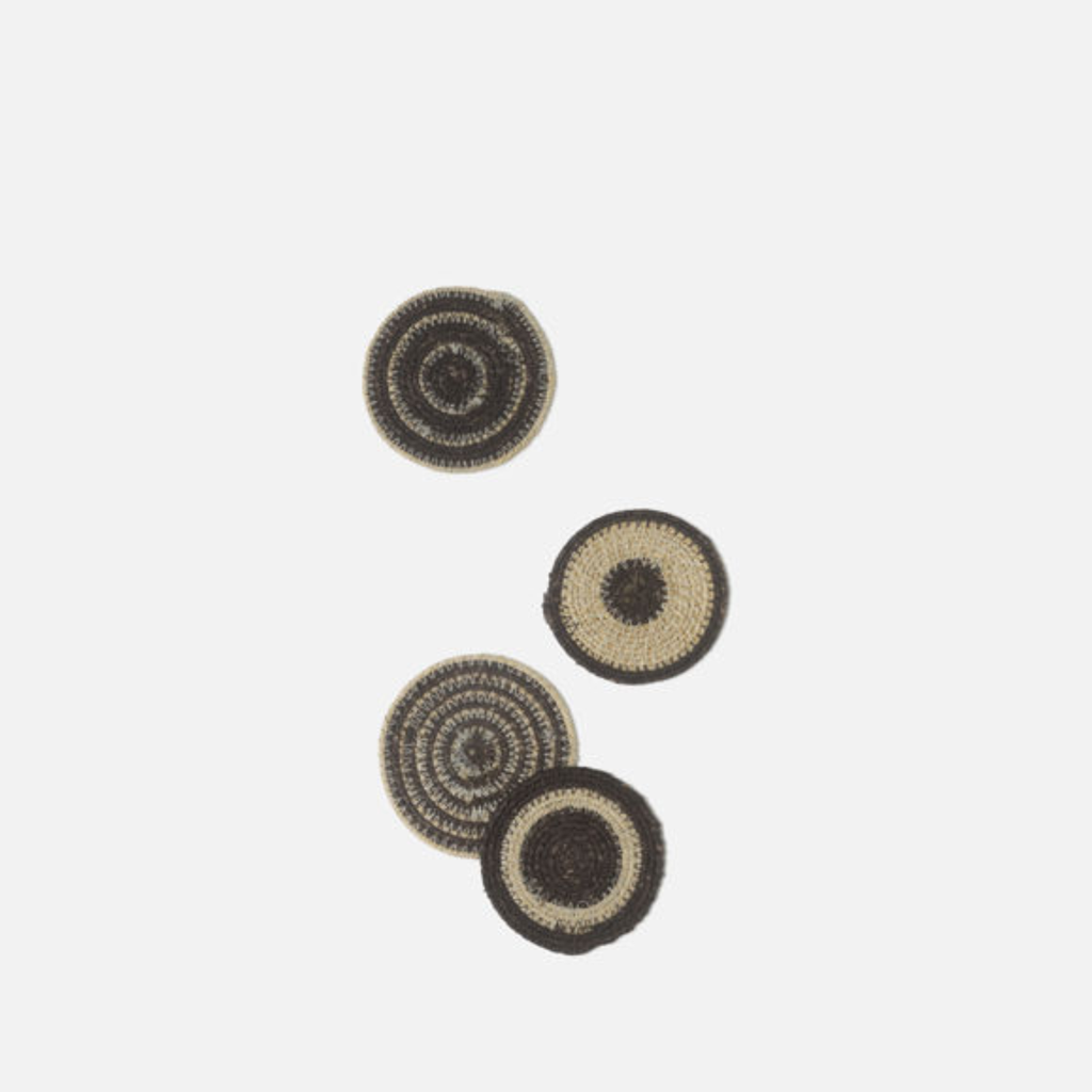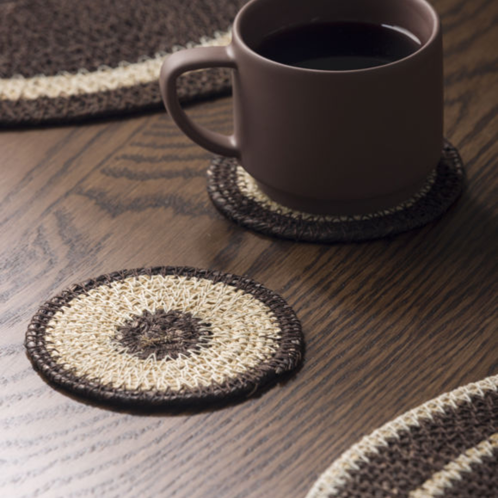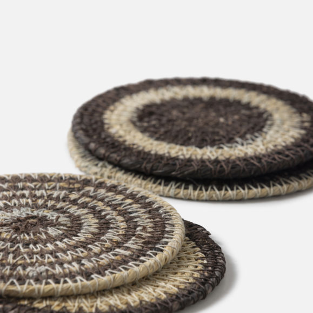 Bring natural charm to your table with the Agora woven coasters. The four-piece set showcases unique two-tone circular designs, each with playful variations in width and spacing. Handwoven in India from natural seagrass, they bring artisanal craftsmanship and an organic texture to everyday dining.