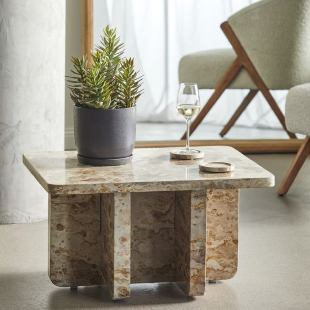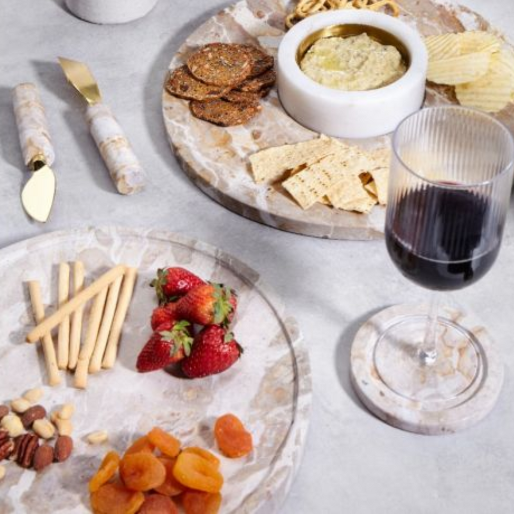 This Grand Designs Carprani Coaster is both stylish and practical. Crafted from marble, they display a beautiful white and beige appearance. With circular silhouettes and ribbed edging, they’re statement pieces! Place under hot or cold drinks to protect your tabletops from heat damage.