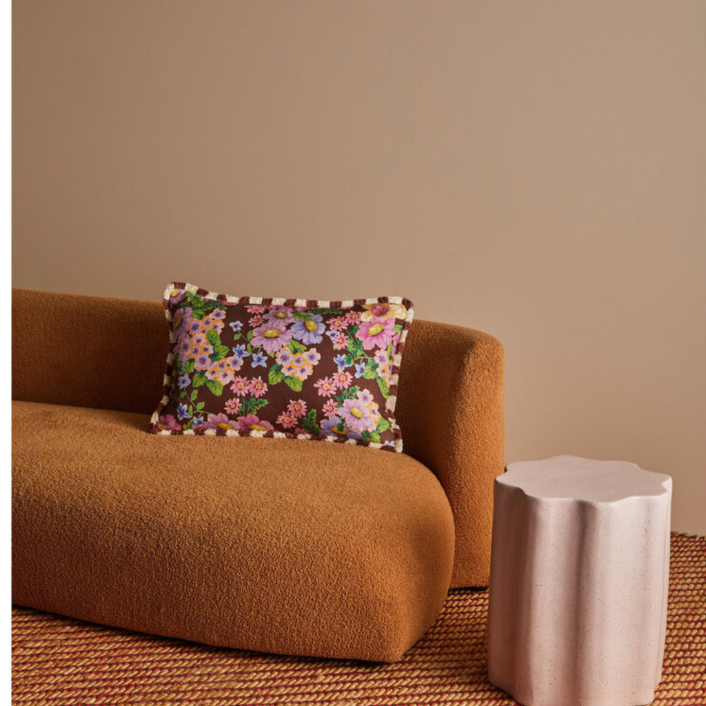 From In The Garden collection, this 60 x 40cm cushion is finished with a cream/chocolate cotton fringe trim and includes an ethically sourced plush feather insert.
