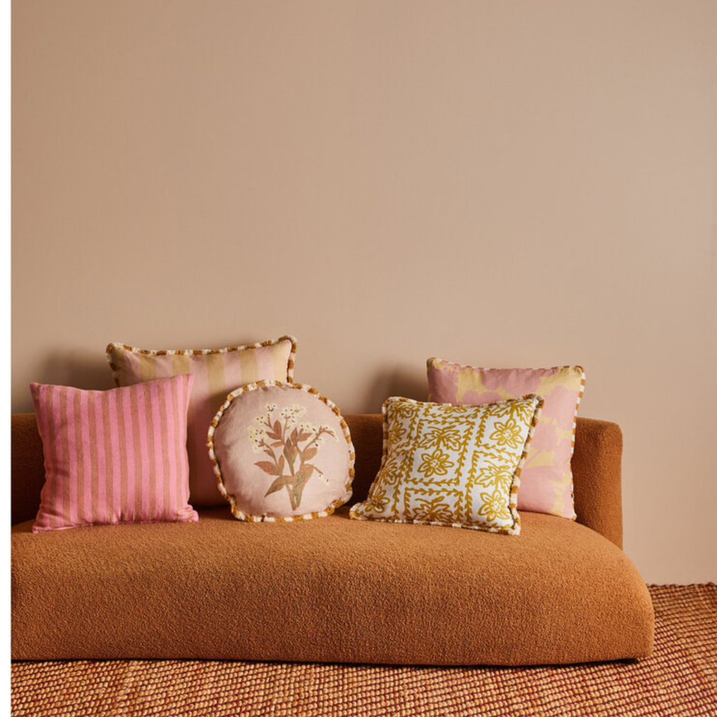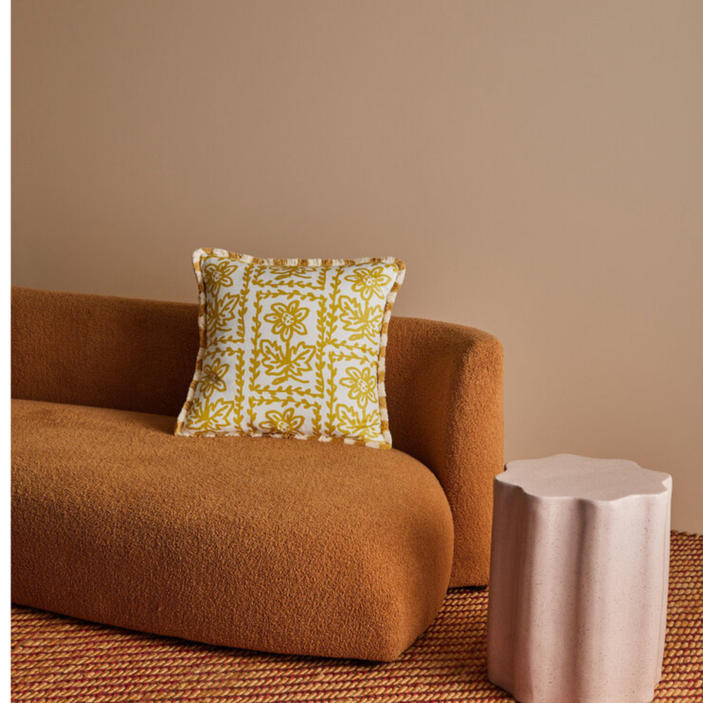 This yellow linen cushion showcases Bonnie & Neils vintage-inspired Daisy print in bold florals. Playful yet refined, it brings a cheerful lift to any space.