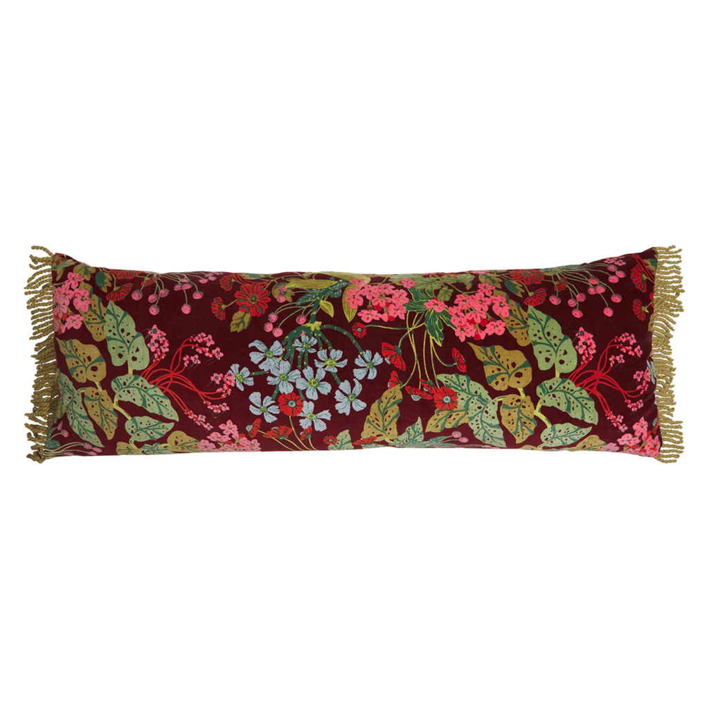 Bring luxury, warmth and texture to any interior with our lush velvet cushions. Made one metre wide, this piece is perfect for lying across your bed or couch as a statement piece. Extra-long silhouette adds a neat statement finish to beds or couches. Fringe edges add an extra touch of texture.