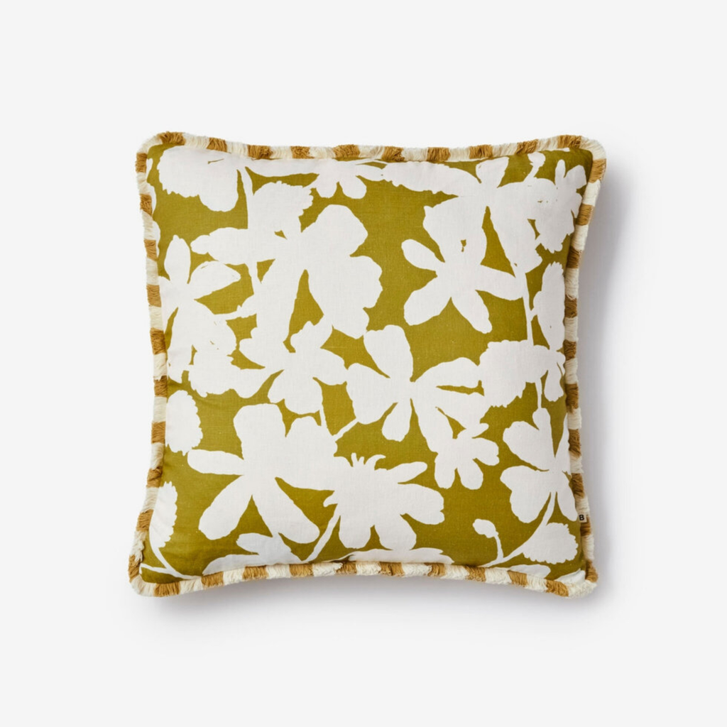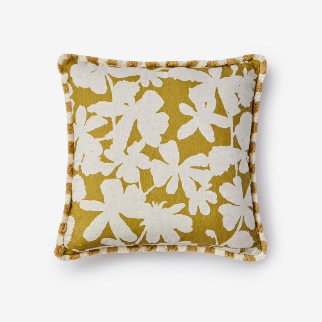 From In The Garden collection, this 50cm cushion is finished with a cream/tan fringe trim and includes an ethically sourced plush feather insert.