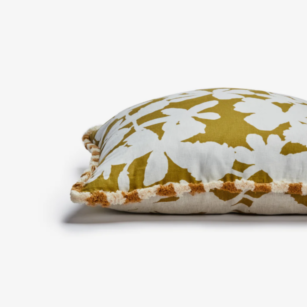 Letta blends vintage florals with contemporary structure. In a golden mustard palette, this linen cushion feels both nostalgic and bold - perfect for adding colour and detail. Double sided design with linen and oatmeal on reverse.