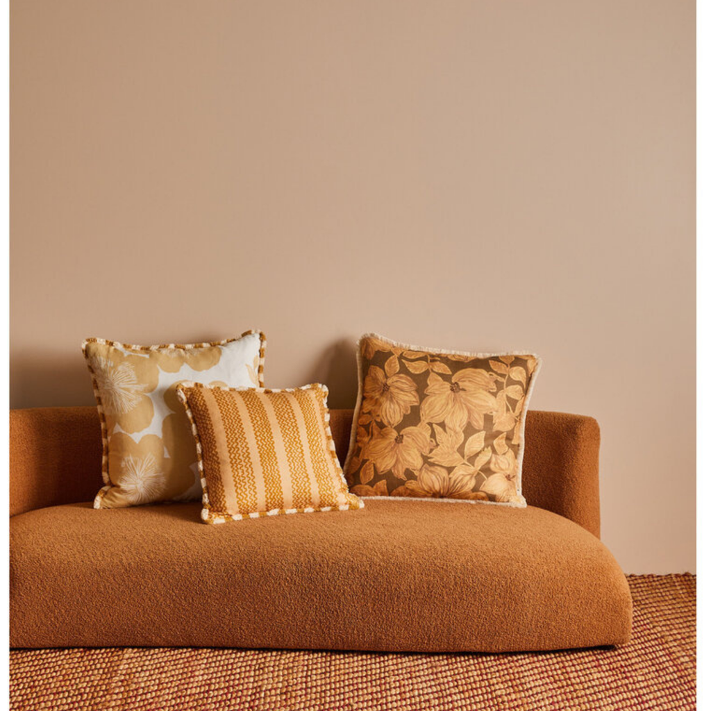 Inspired by the bold forms of anemones, Jardin in Wheat is a neutral floral cushion that offers a soft, natural take on graphic prints. Grounded yet expressive for tonal styling.