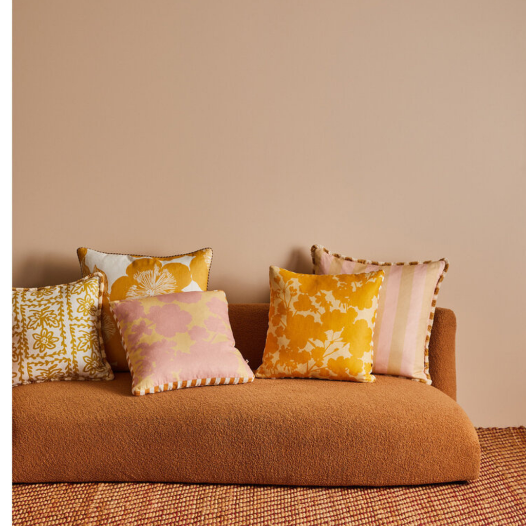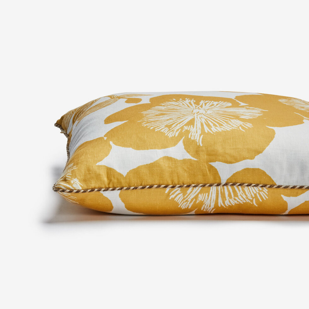 Bright and bold, this yellow linen cushion features Jardin’s graphic floral forms for a sunshine-filled statement. Perfect for adding energy to your cushion combinations.