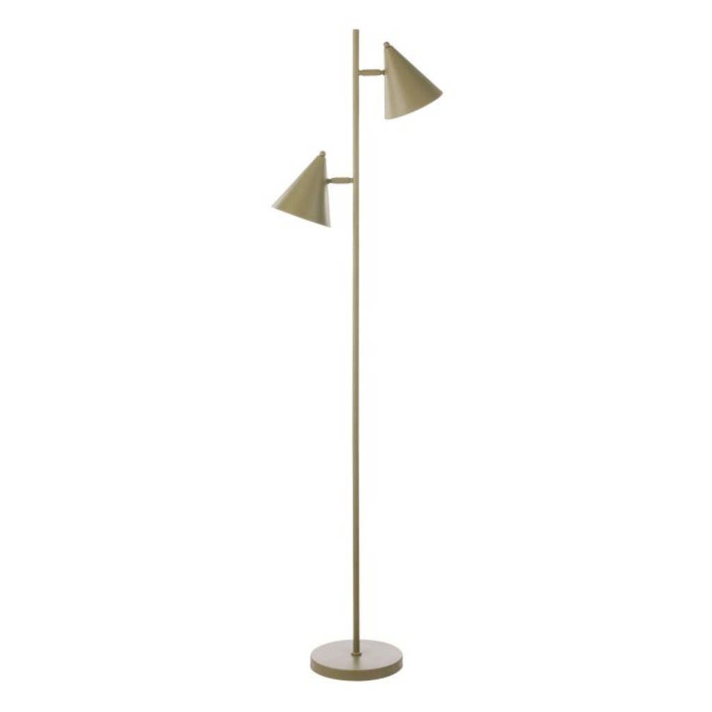 It features a conical shade balanced on a round base all made from iron finished in green. Place it in a large living area or office space to create depth with lighting or a comfortable corner to read and work.
