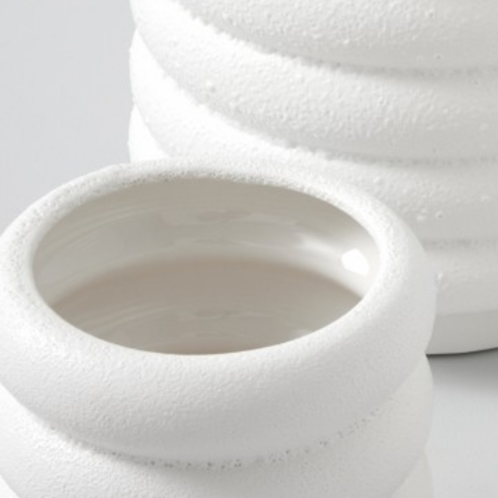 Featuring a quirky shape and a textured bubbly finish, the Alder planter is the perfect companion for your favourite plants! The Alder range is made from white porcelain, with a matte exterior and gloss glazed interior.