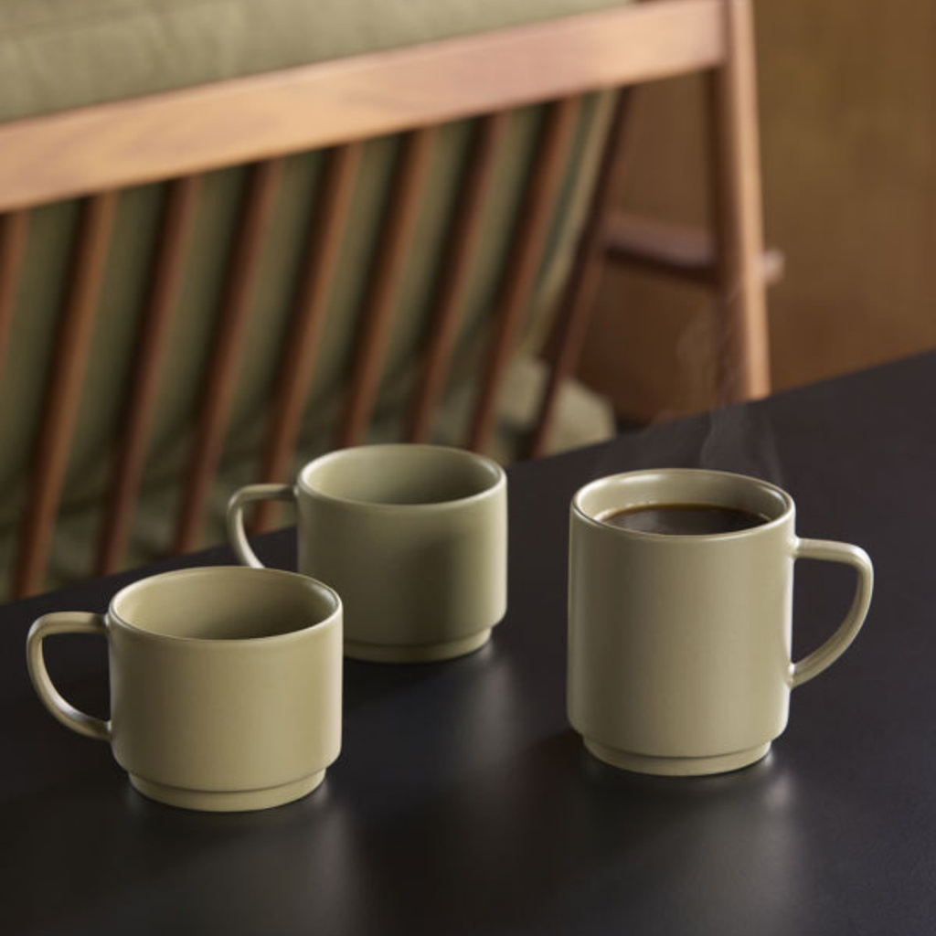 Enjoy your favourite hot drink in the stackable Copo mug. The design celebrates functional elegance with a matte colour range that is bold yet refined. The colour selection shows a softened and modernised 1950s palette–this reflects the era the mugs were inspired by.