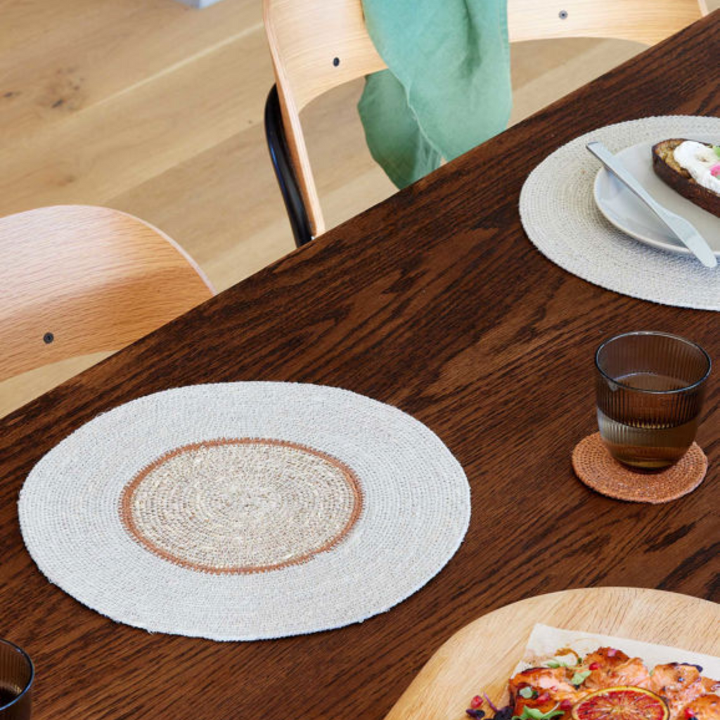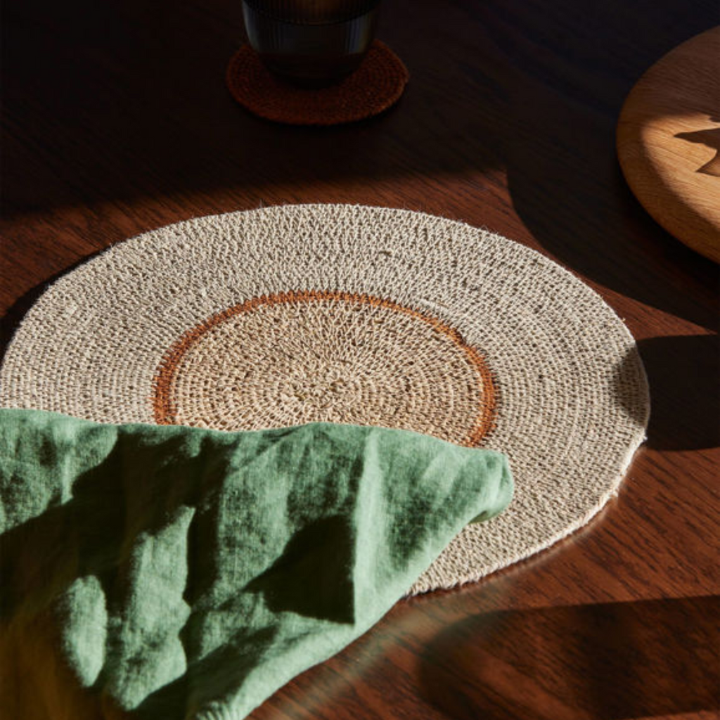 The Pinto Placemat is an addition to the existing range which explores the interaction of colour and texture, in an earthy colourway. Designed in New Zealand by Città.  The placemats are handwoven in India using natural seagrass. Traditional weaving techniques celebrate the craftsmanship and create a unique, organic finish.