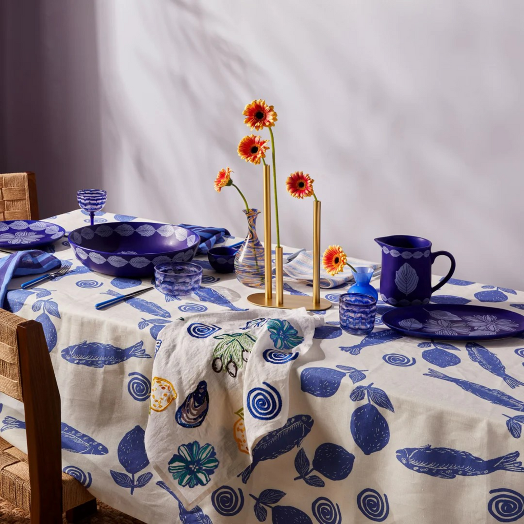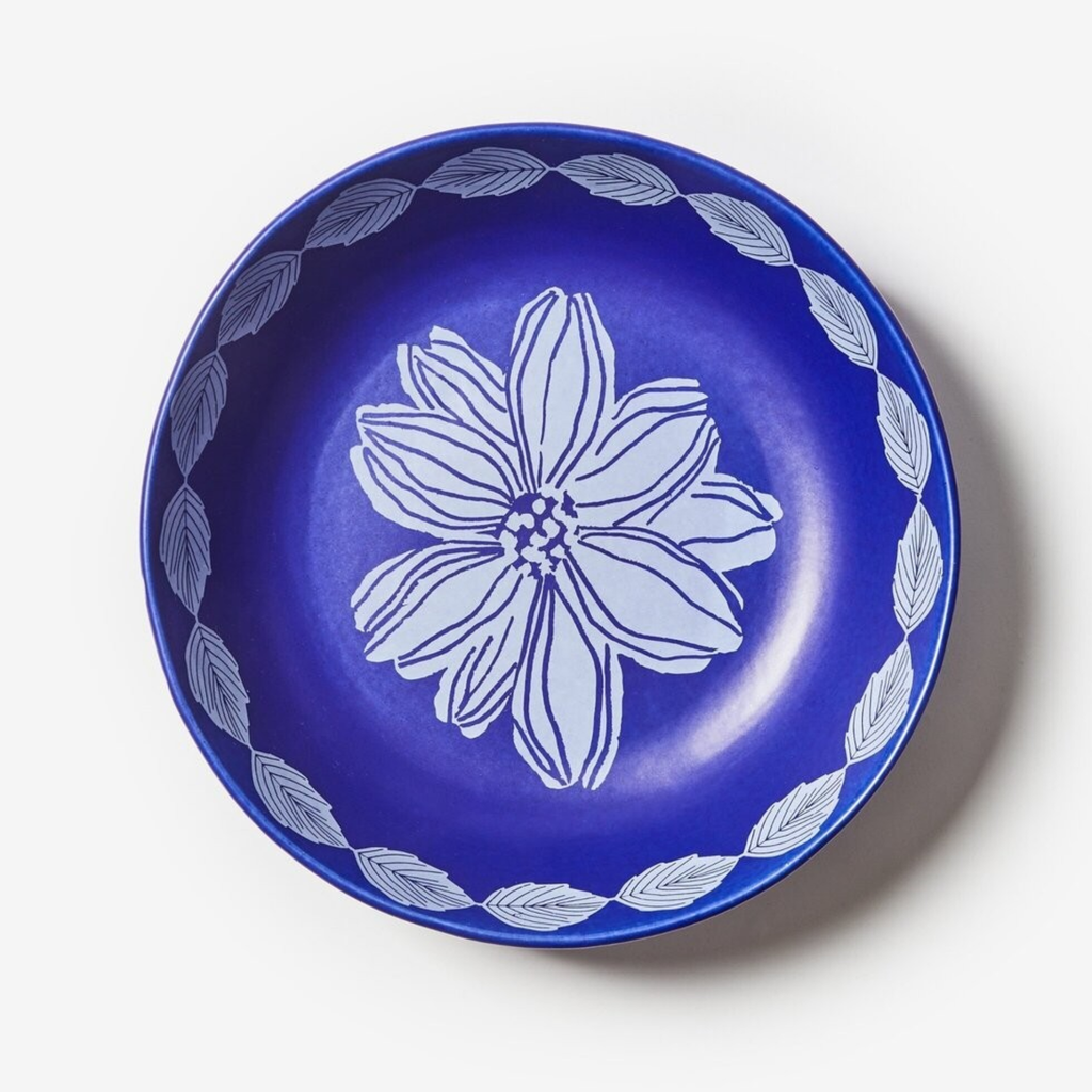 Serve up delicious salads and share plates this summer in Bonnie & Neils Margot Cobalt Large Salad Bowl. Inspired by patterns and colours found in tavernas across the Mediterranean, this stoneware bowl features botanical motifs printed on a vibrant blue base. A striking centrepiece for your next gathering, this generous salad bowl will also look gorgeous on display when not in use.