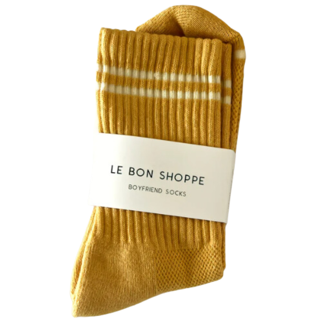 The Boyfriend Sock is one of our signature styles and a year round bestseller. She is the perfect mix of function and fashion creating an effortless sporty vintage charm to any outfit. She is slightly longer than a classic crew and has a contrast double stripe. Durable and comfortable she upgrades any outfit.