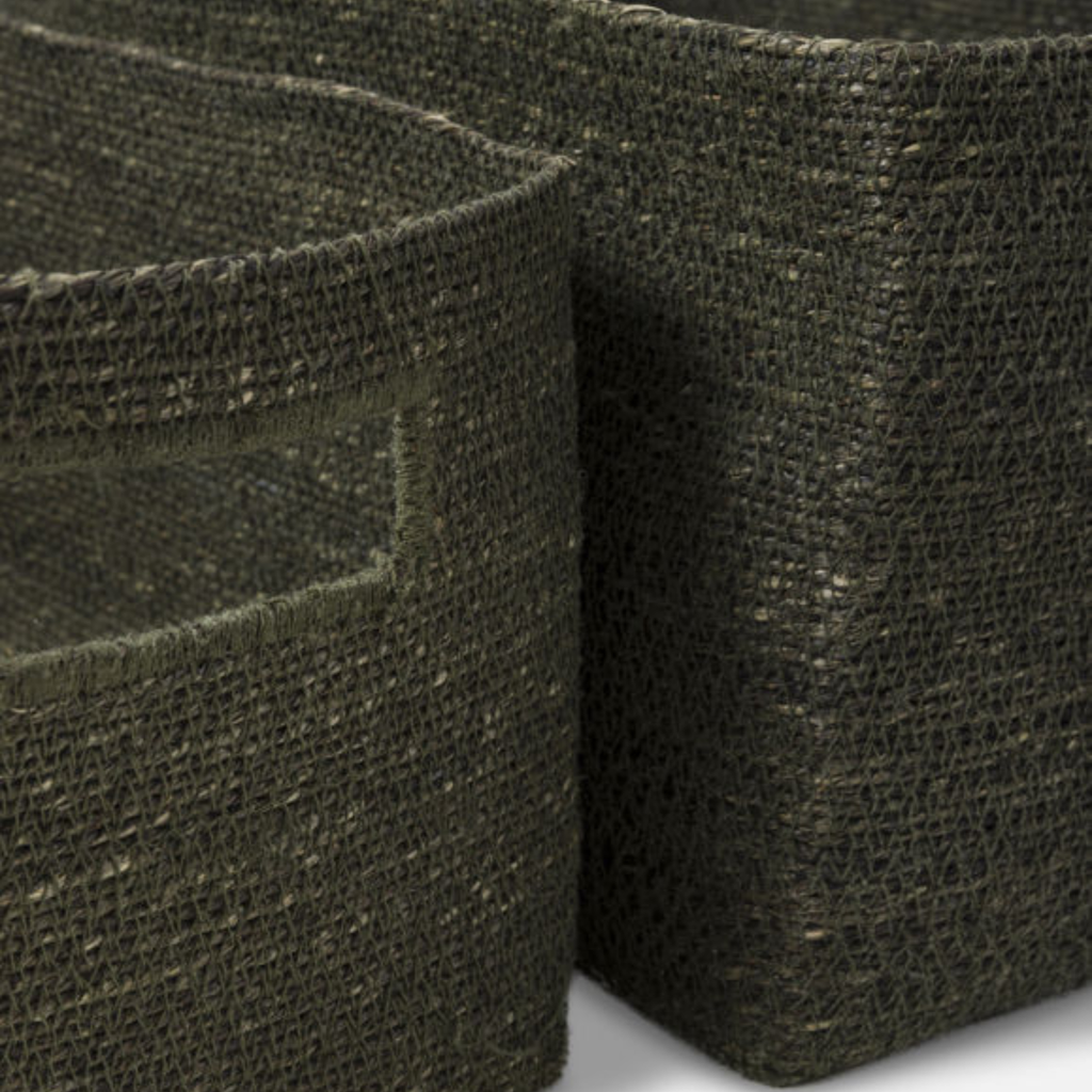 The basket is handwoven in India using natural seagrass. Traditional weaving techniques celebrate the craftsmanship and create a unique, organic finish. Its artisanal nature results in subtle variations in size and shape.