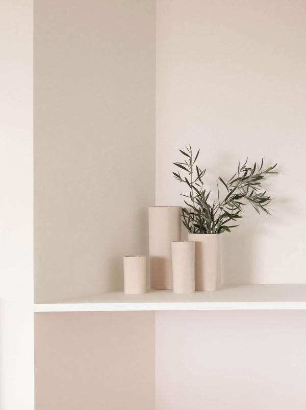 The Fossil vase design features subtle organic form that is highlighted when the light hits from the side. The ceramic vase can be filled with flowers or displayed as a sculptural object on its own.