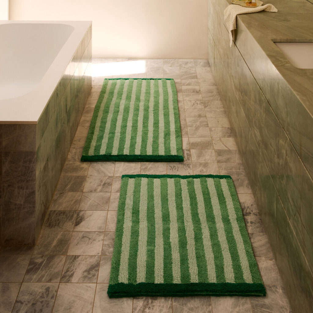 Bath Mat - Stripe Reversible Green Long